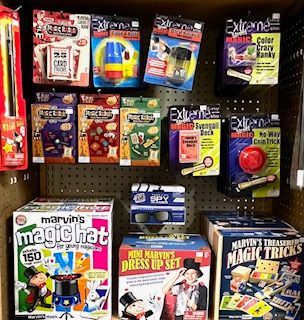 Our toys from yesteryear will bring back a lot of fond memories of your own childhood. But that's not all; we even have a whole aisle for novelties, magic, pranks, and gags for when you're feeling a little silly or for when you want to be the life of the party. We've got playing cards and card shufflers, dominoes, marbles and dice. We even have bagged figures that are a collector's dream!